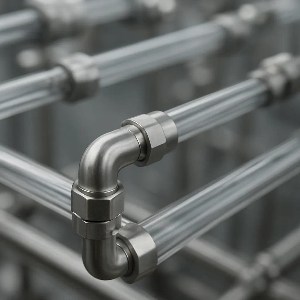 • Stal nierdzewna (typ 316L, 304L) — najpopularniejszy materiał do systemów przesyłu cieczy i gazów w laboratoriach. Dzięki odpowiedniej obróbce powierzchni, takiej jak elektropolishing, osiąga się niską chropowatość i ogranicza sorpcję zanieczyszczeń.